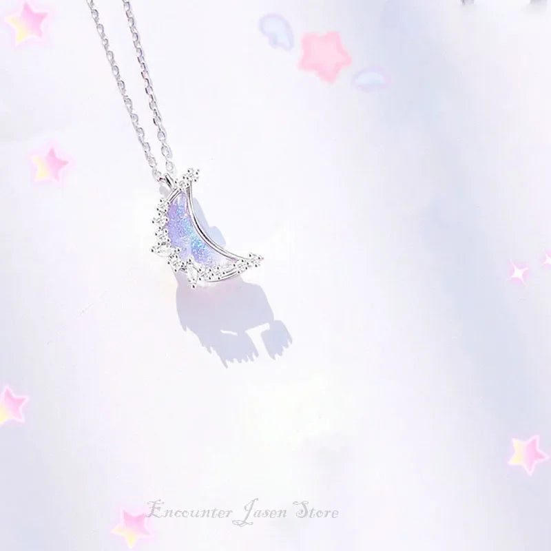 2023 Cute Trendy Star Moon Sugar Necklace New Moon Cloud Collarbone Chain Will Change Color Sugar Birthday Women's Gifts Jewelry
