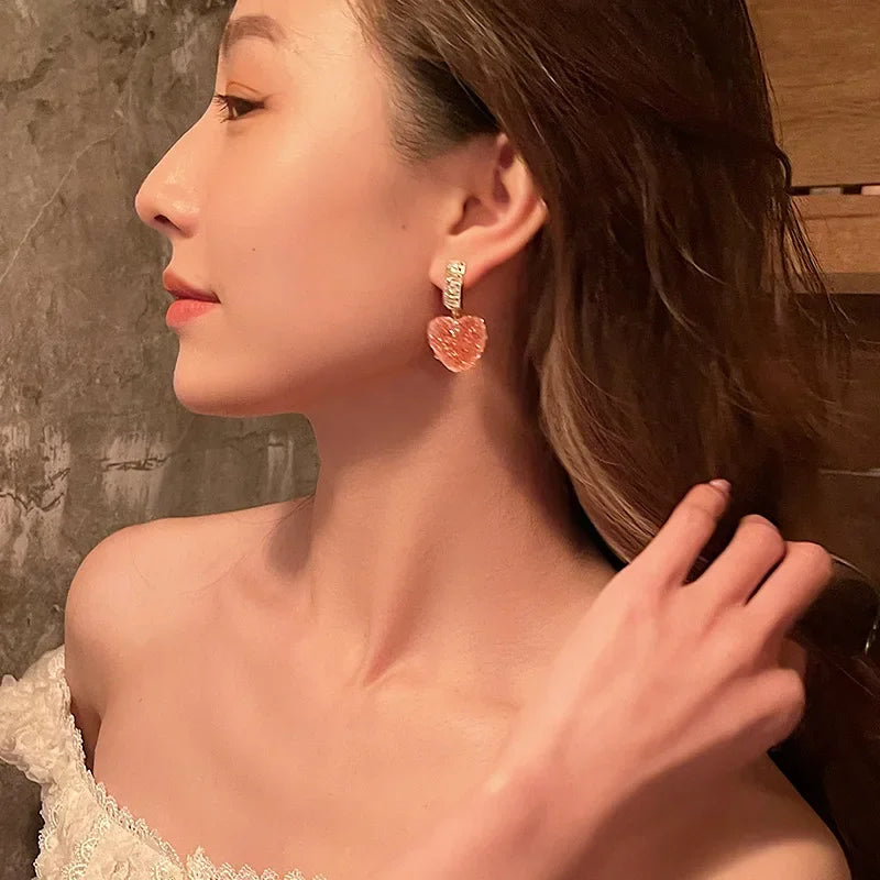2023 New Arrival Trendy Lovely Pink Heart Dangle Earrings For Women Fashion Cute Sweet Crystal Jewelry Girl Gifts