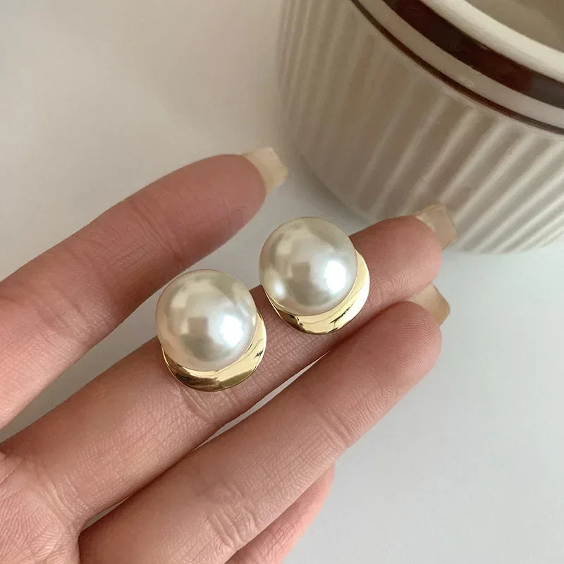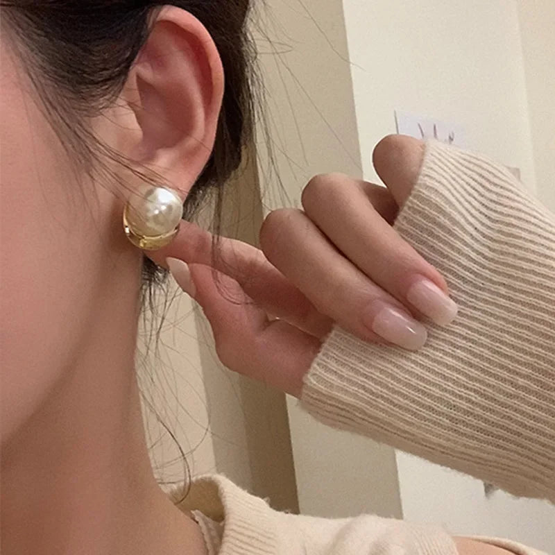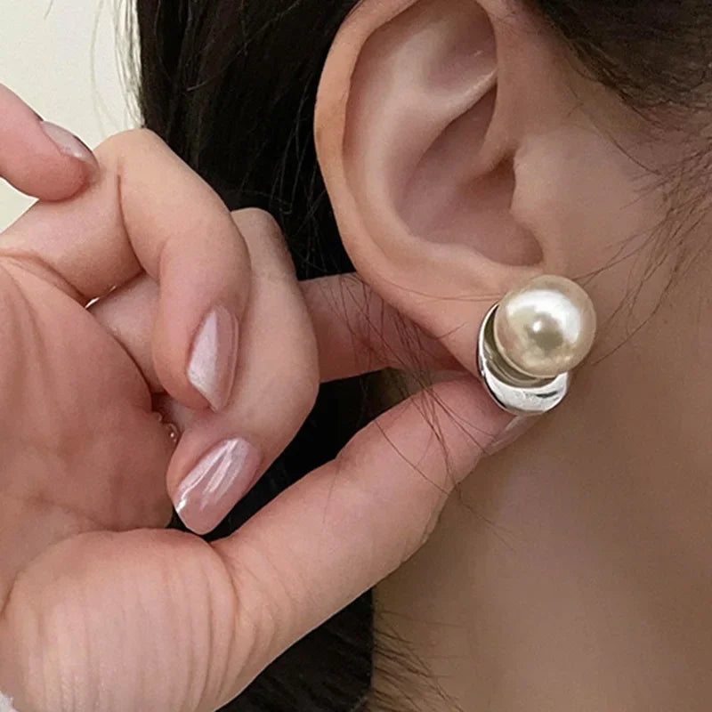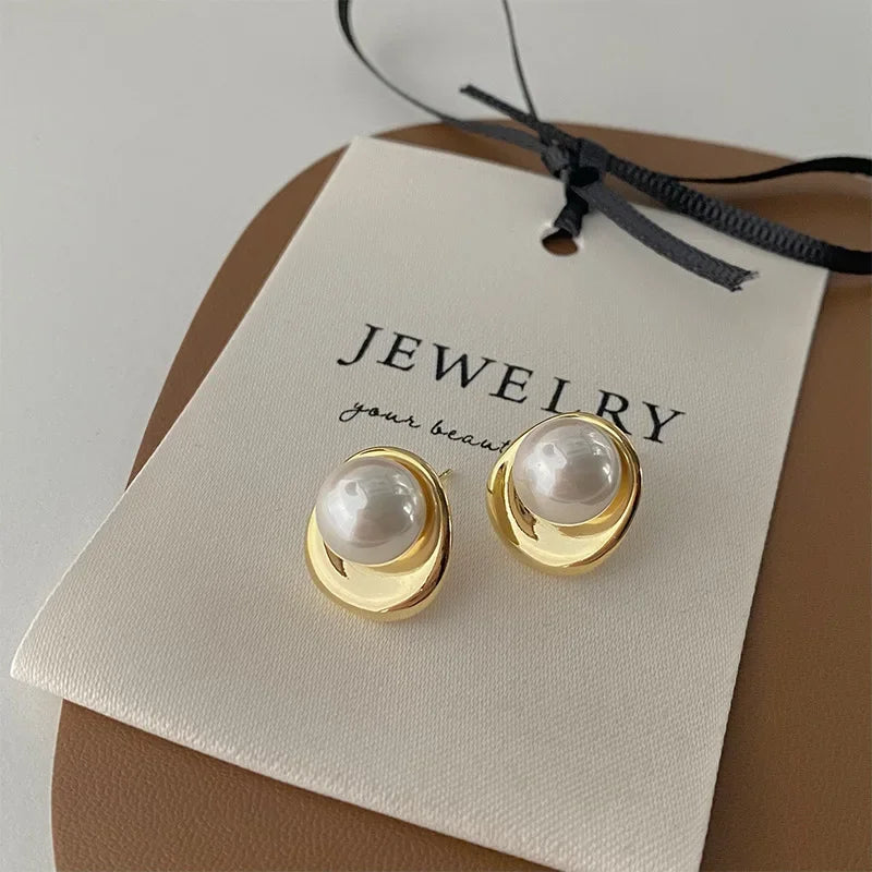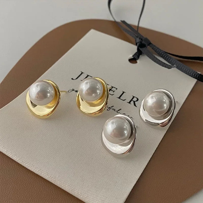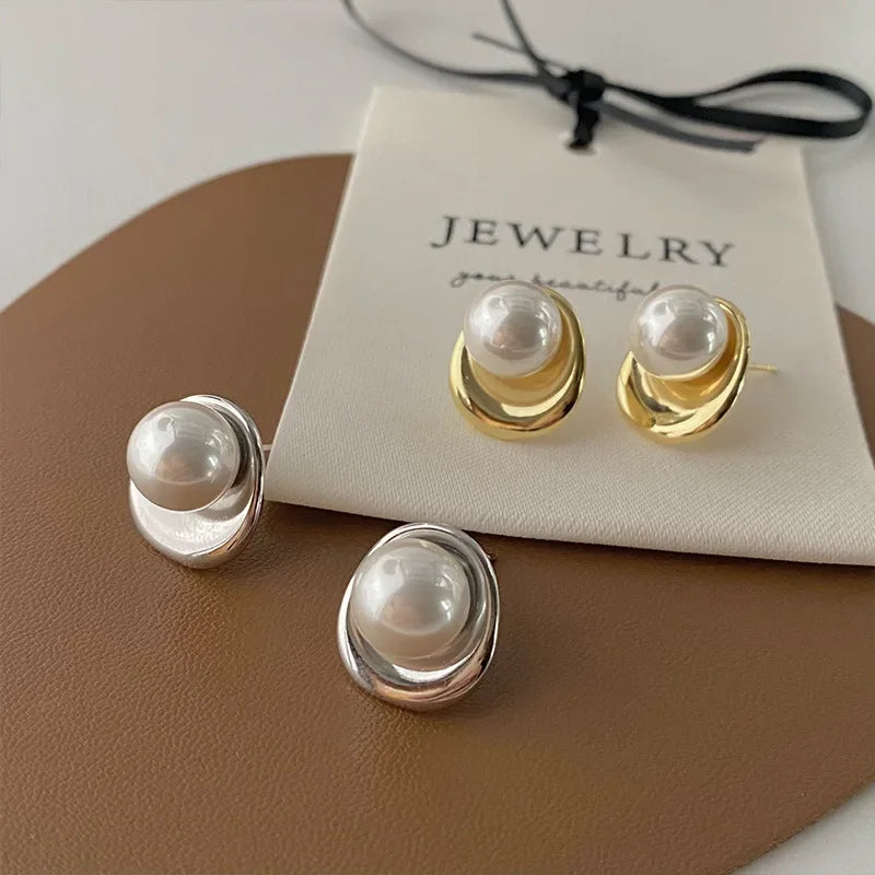 925 Sterling Silver Pearls Round Beads Geometric Earrings For Women Girl Fashion Temperament Jewelry Wholesale