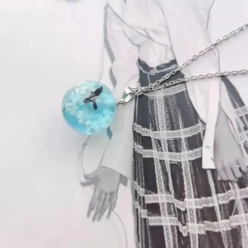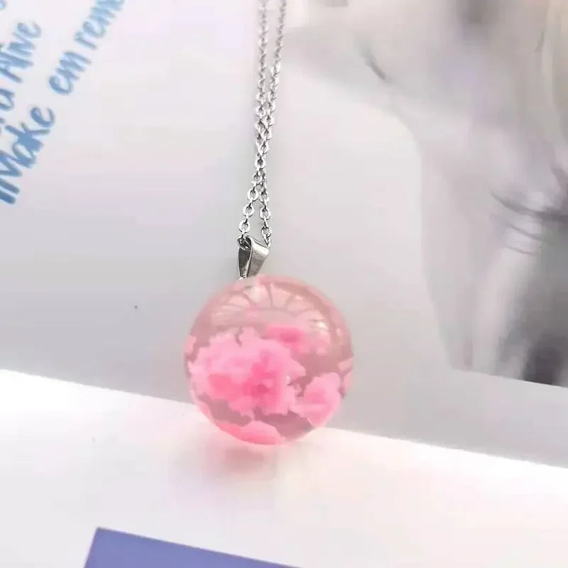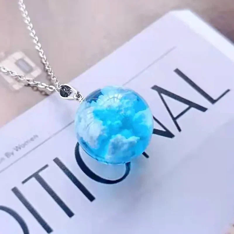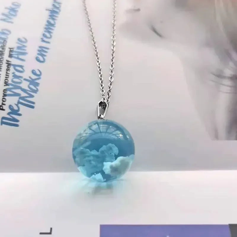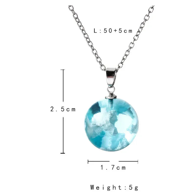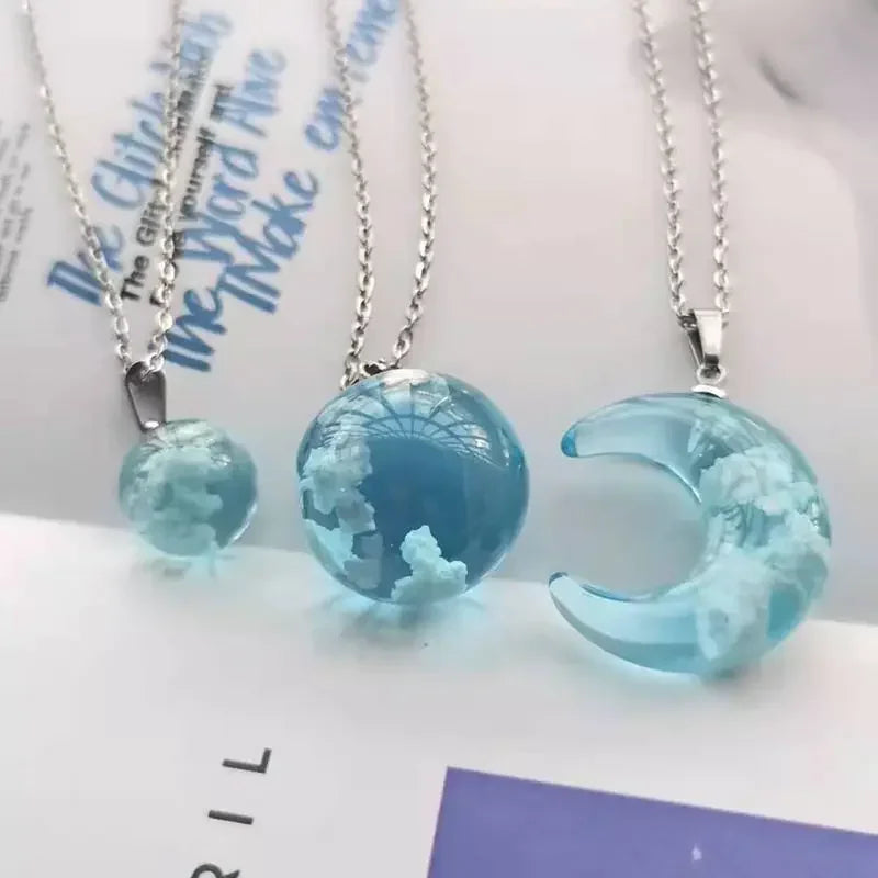 Chic Transparent Resin Rould Ball Moon Pendant Necklace Women Blue Sky White Cloud Chain Necklace Fashion Jewelry Gifts for Girl