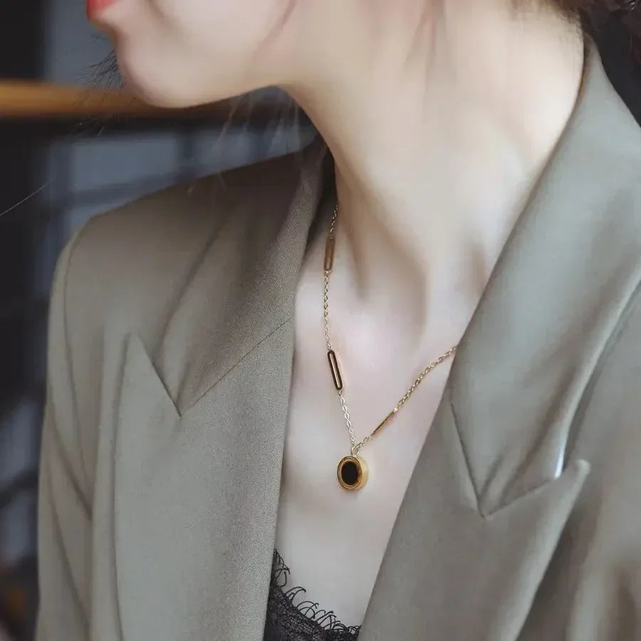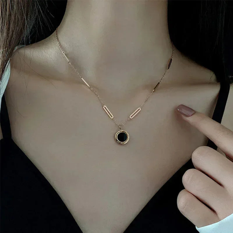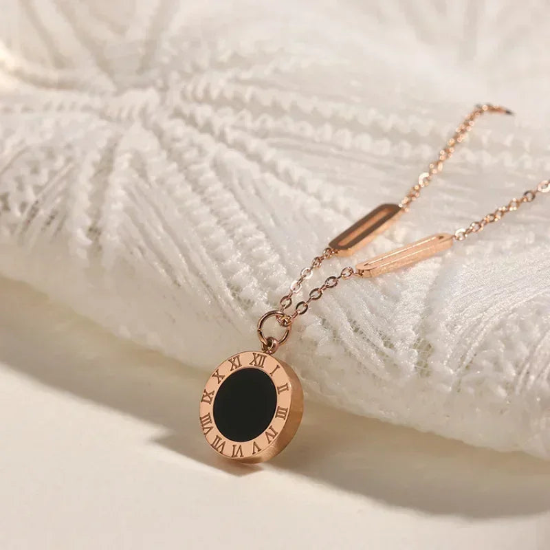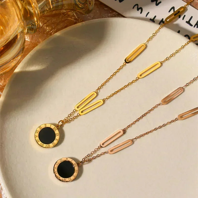 Classic Fashion Stainless Steel Roman Digital Wafer Pendant Necklace 2023 Fashion Jewelry Christmas Party Women's Sexy Necklace