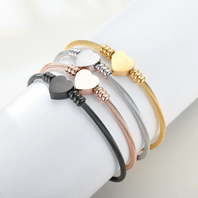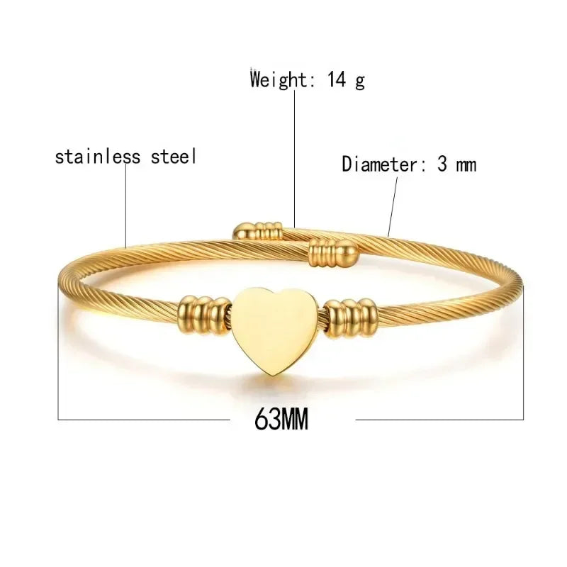 European Cross-border Stainless Steel Love Shaped Adjustable Wire Bracelet Three-color Titanium Steel Open Bracelets Jewelry