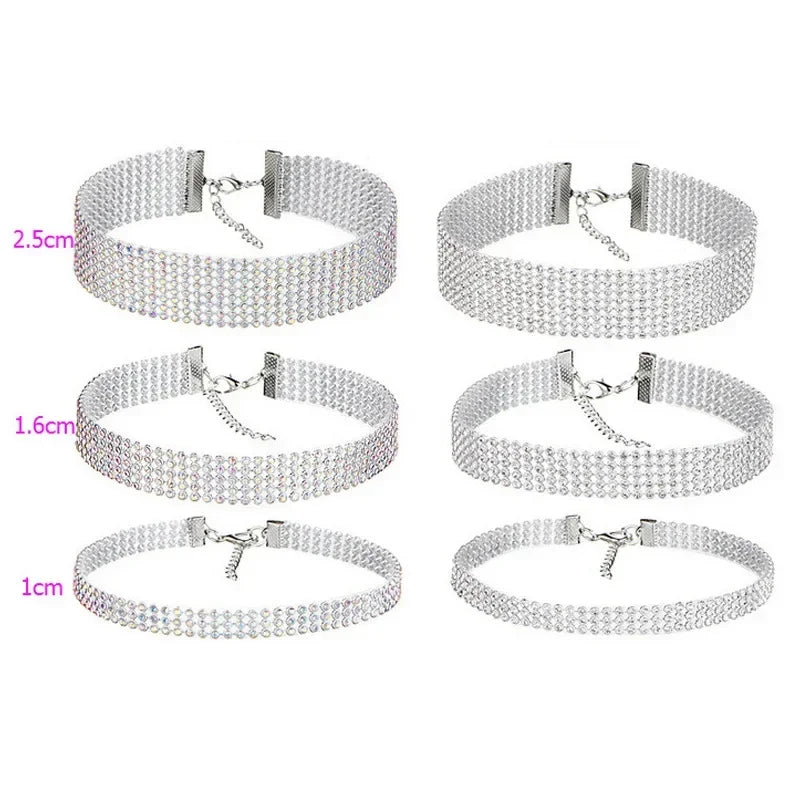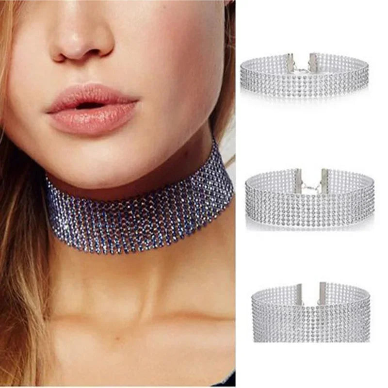 European Style Women Bundle Neck Element Necklace Fashion Jewelry Punk Hip Hop Choker Necklace Inlay Rhinestone Collar Gift