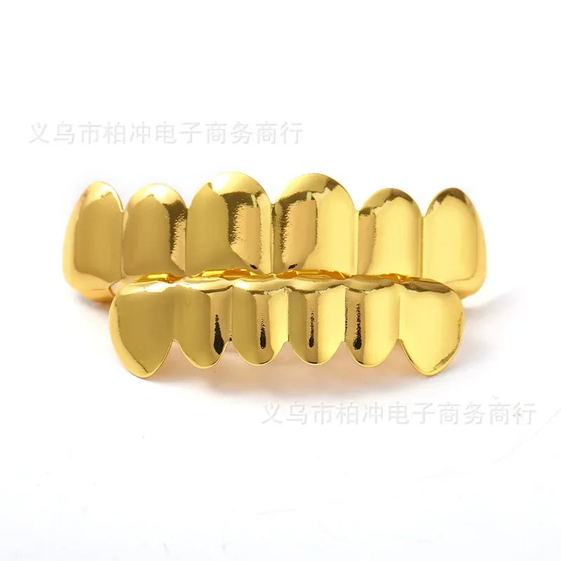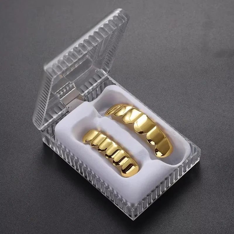 Gold Silver Plated HIP HOP Teeth Grillz Top & Bottom Grills Set With silicone Real Shiny Vampire Tooth Sets