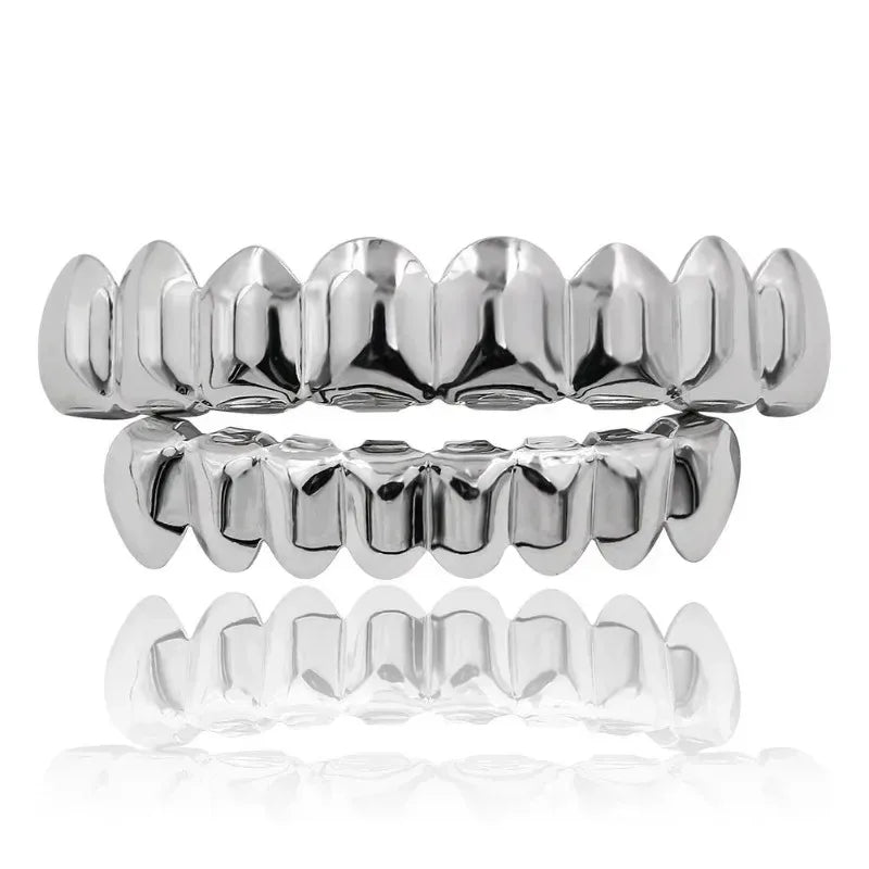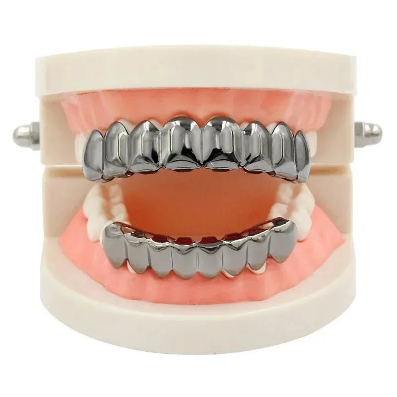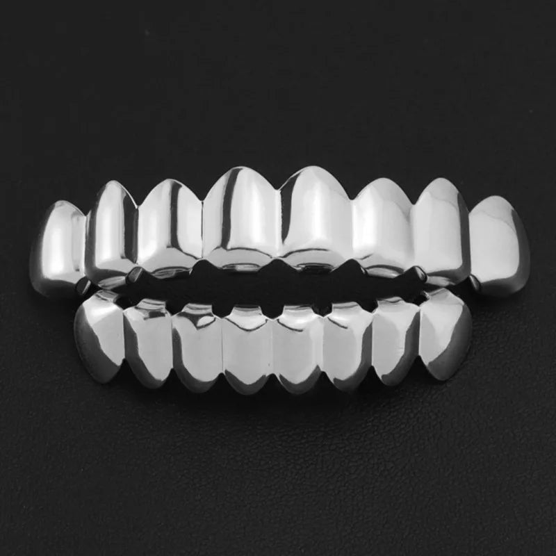 Gold Silver Plated HIP HOP Teeth Grillz Top & Bottom Grills Set With silicone Real Shiny Vampire Tooth Sets teeth grillz