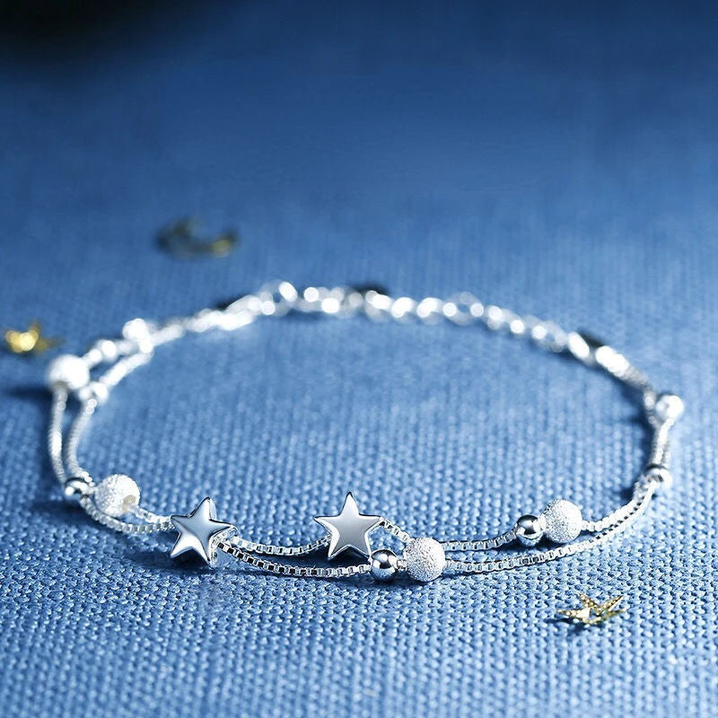 Harajuku Crystal Star Pentagram Pearl Beaded Bracelet for Women Vintage Aesthetic Charm Double Layer Chain Bracelet Jewelry Gift