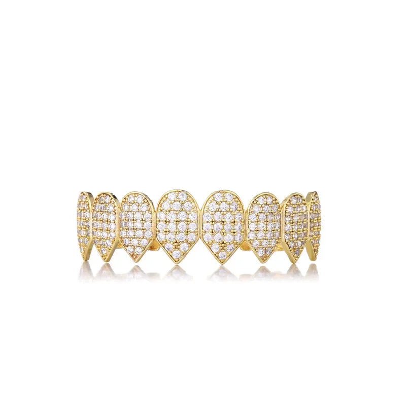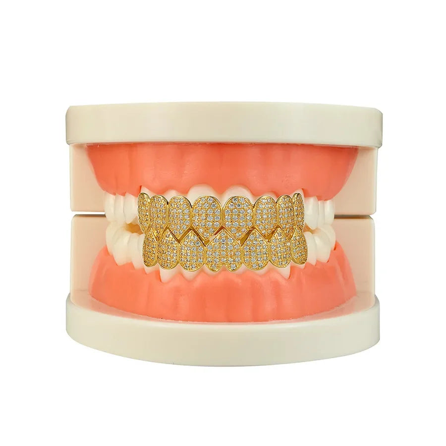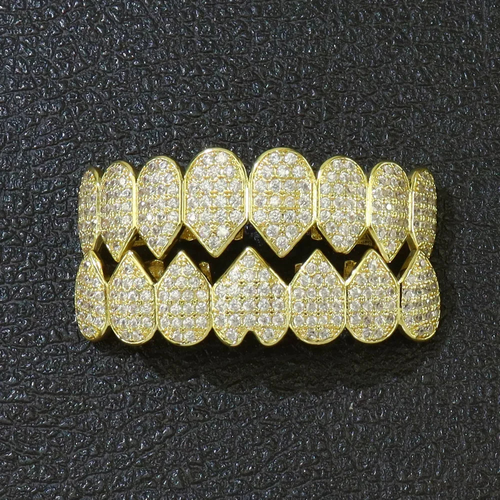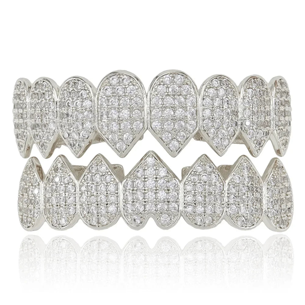 Hip Hop CZ Teeth Grillz Set For Unisex Top Bottom Mouth Gold Silver Color Teeth Grills LoveTooth Removable Fashion Jewelry