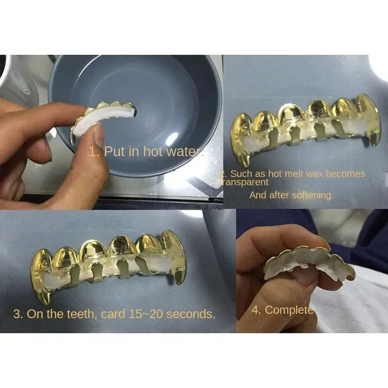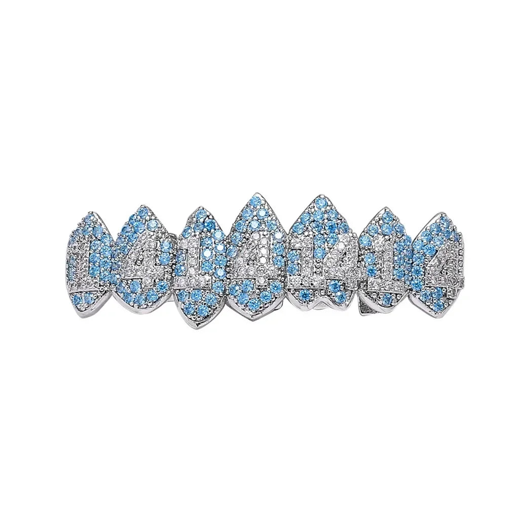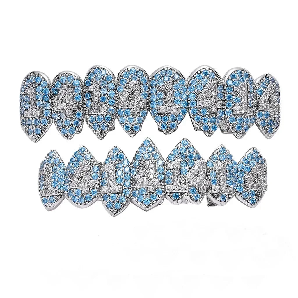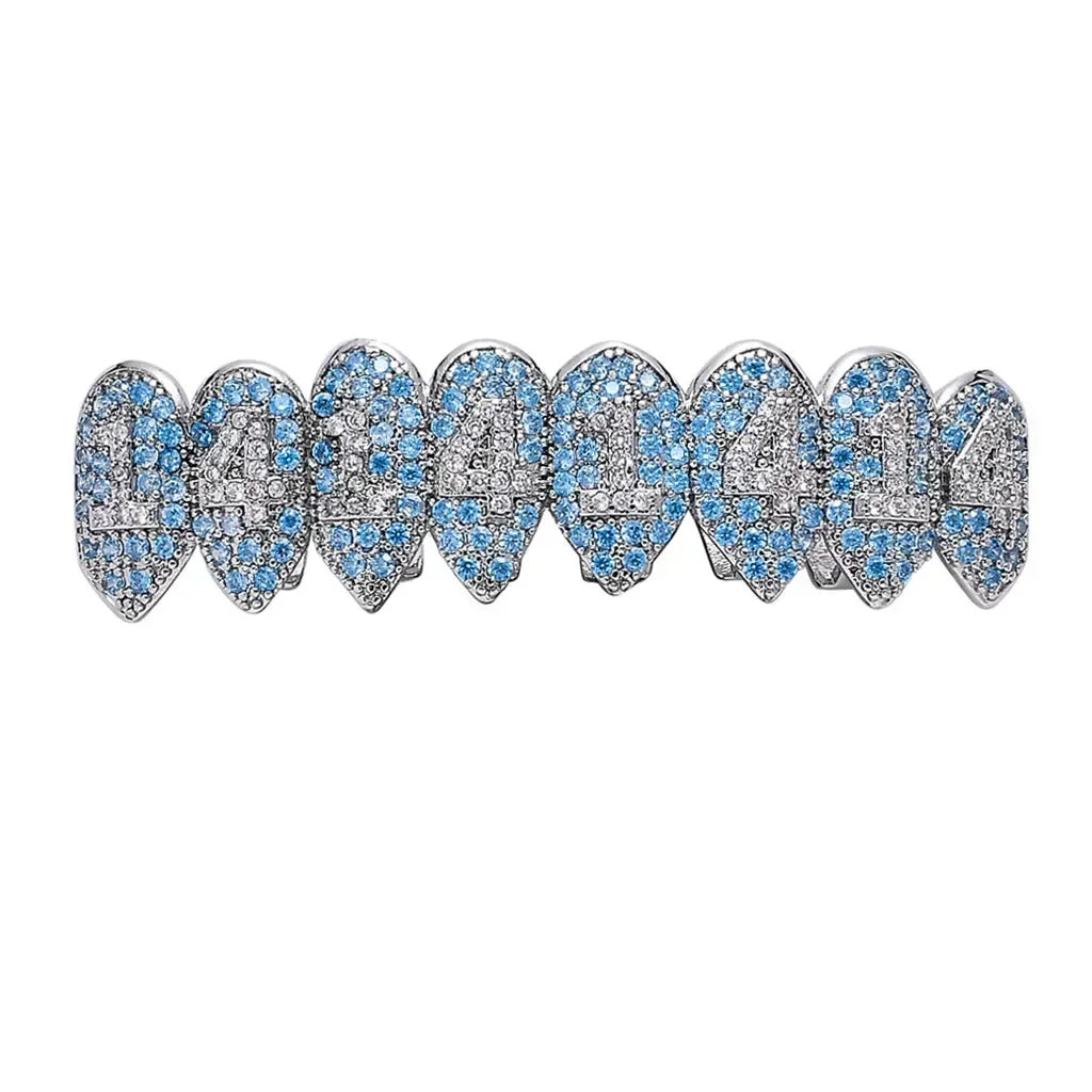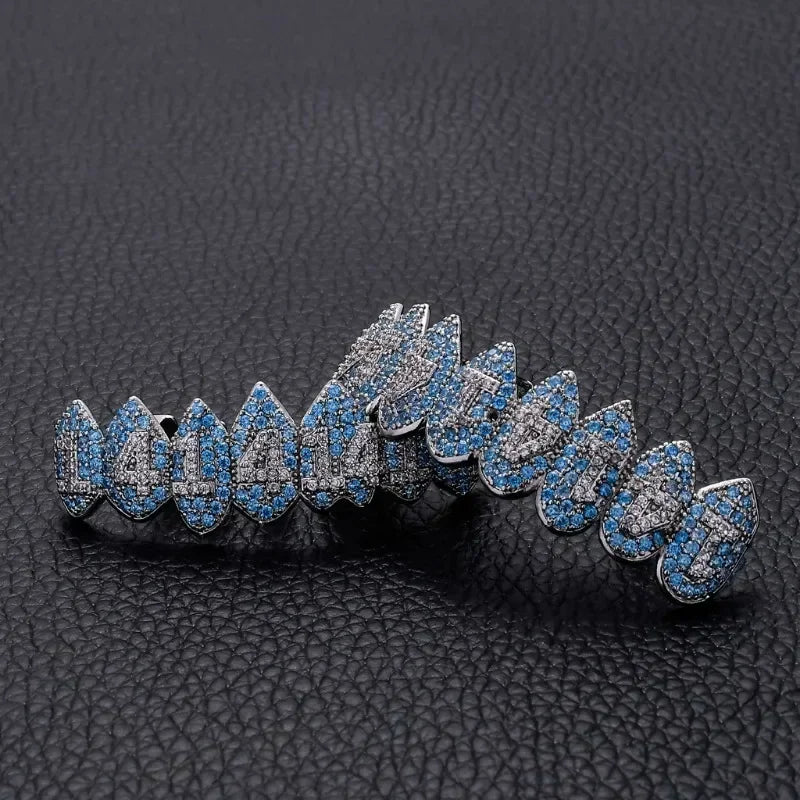 HipHop CZ Teeth Set For Unisex Blue Zircon Top Bottom Mouth Gold Silver 1414 Teeth Cap Removable