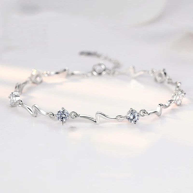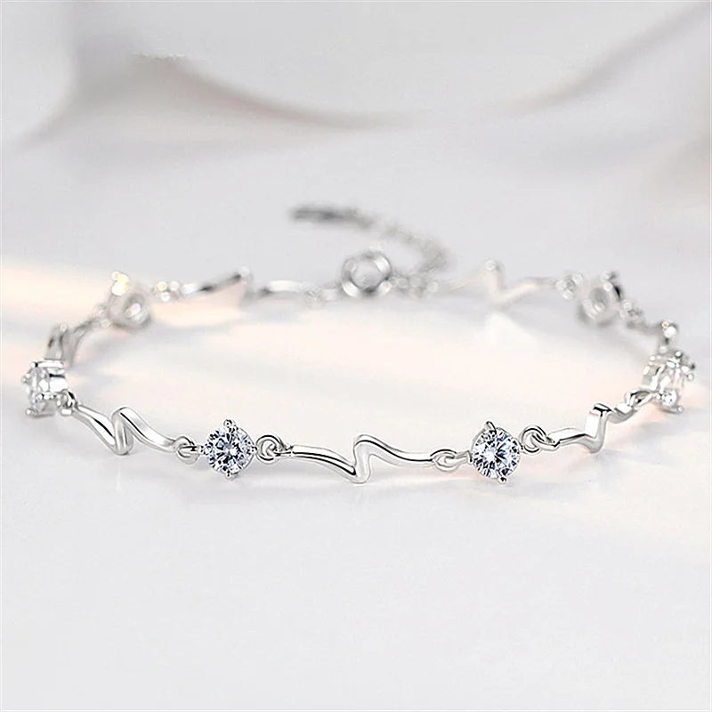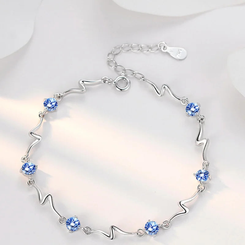 Korean Fashion Blue White Zirconia Elegant Sweet Delicate Silver Color Ladies Jewelry Wedding Party Bracelet