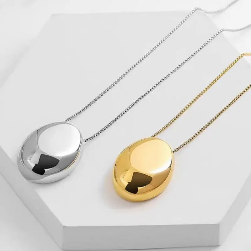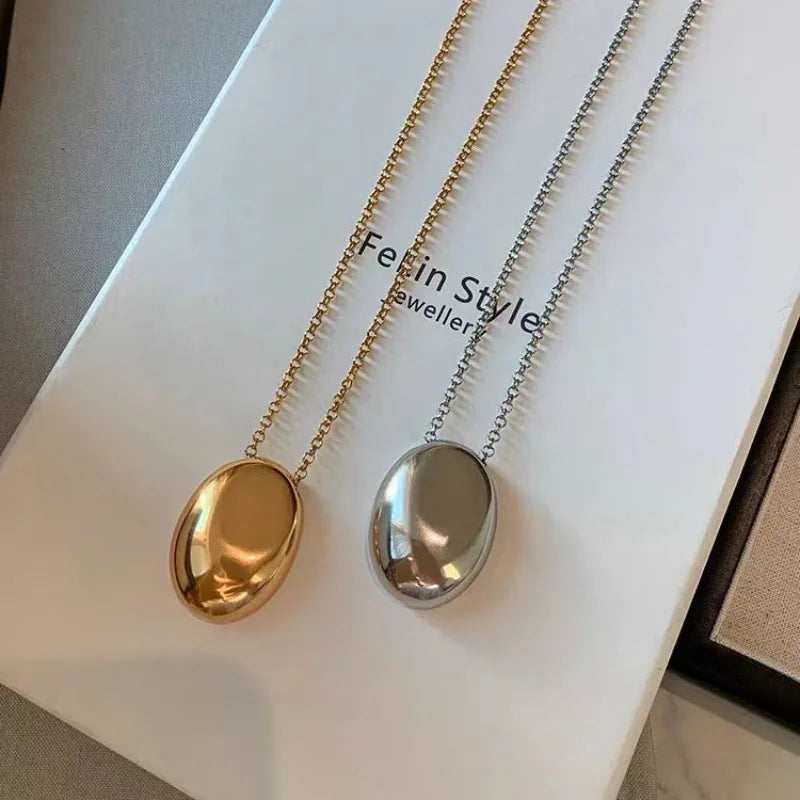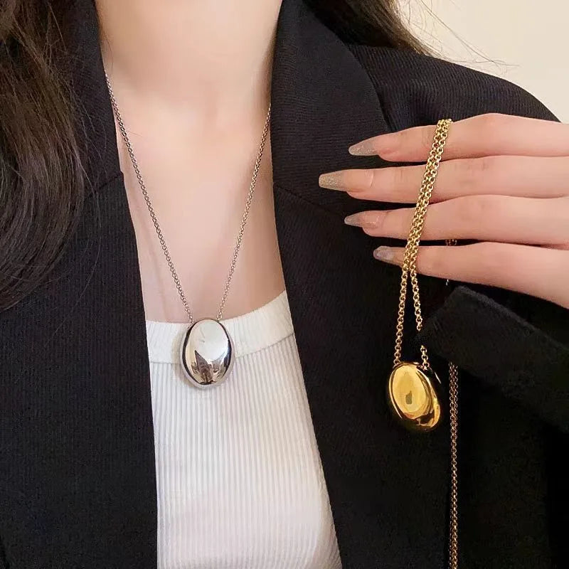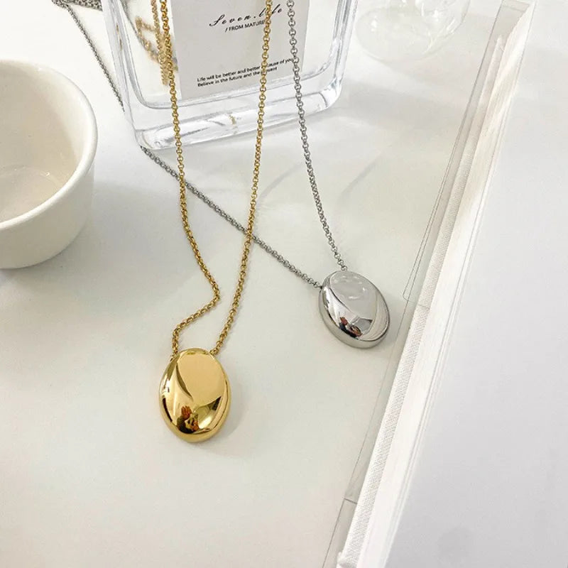 New Brushed Metal Oval Metal Necklace for Women Long Sweater Chain Luxury Charm Thin Chain Party Elegant Jewelry Gifts