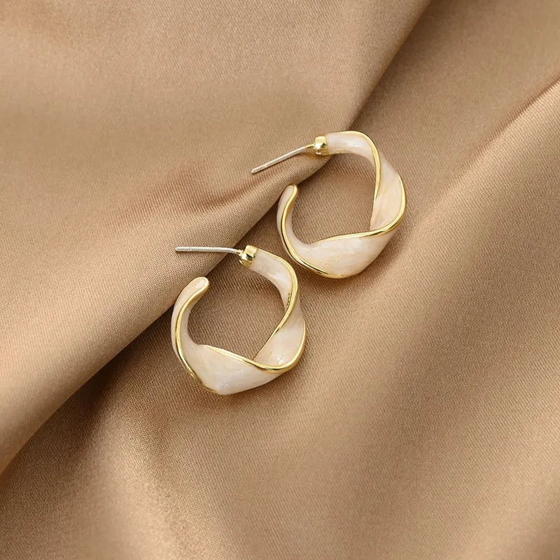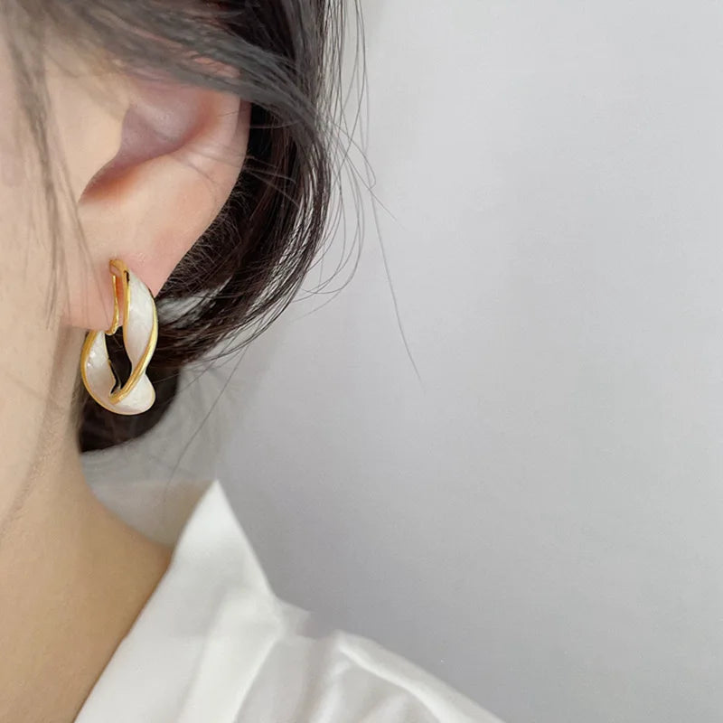 New Punk Golden Color Metal White Cross Hoop Earrings For Women Girls Fashion Circle Brincos Ear Accessories Jewelry