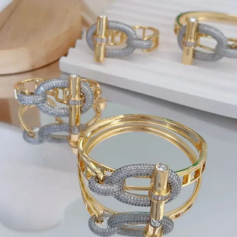 New Waterproof Cubic Zirconia OT Buckle Bangles Stainless Steel Bracelets Tarnish Free Jewelry Gift for Women Factory Wholesales