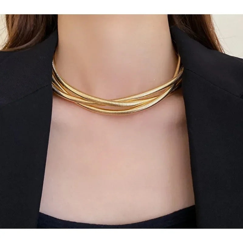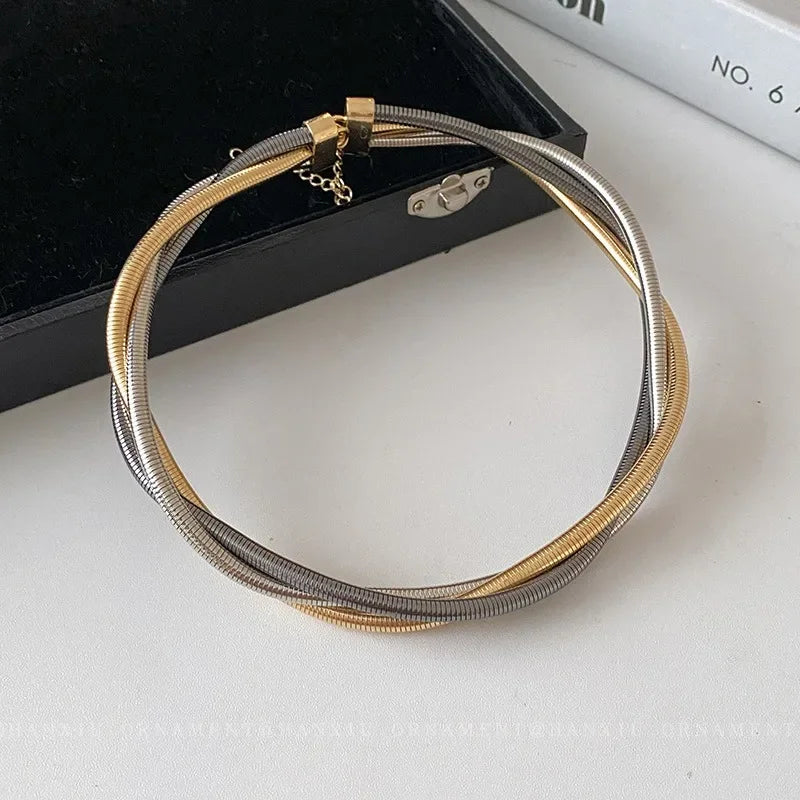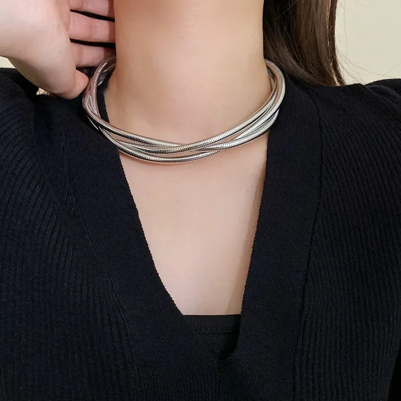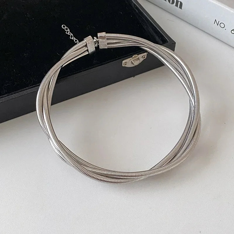Titanium steel Alloy Three-layer Snake Chain Necklace Temperament Women's Collarbone Chain Jewelry Wholesale