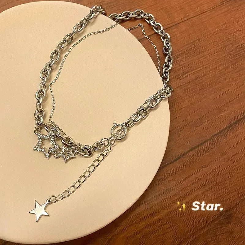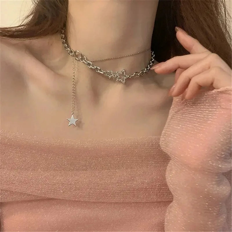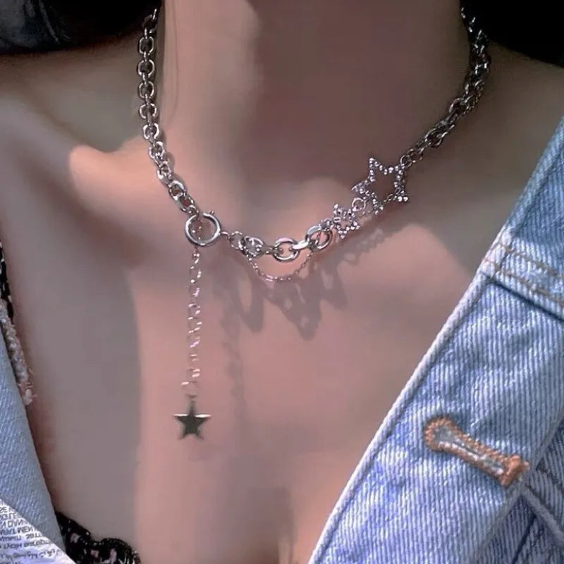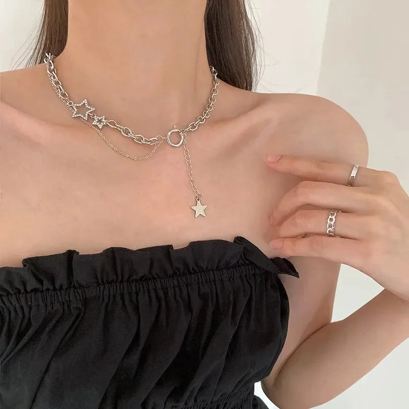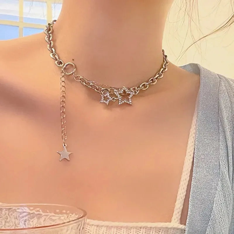 Y2K Star Zircon Pendant Necklace for Women Luxury Sweet Cool Girl Punk Heart Clavicle Chain 2023 New Fashion Jewelry Party Gift